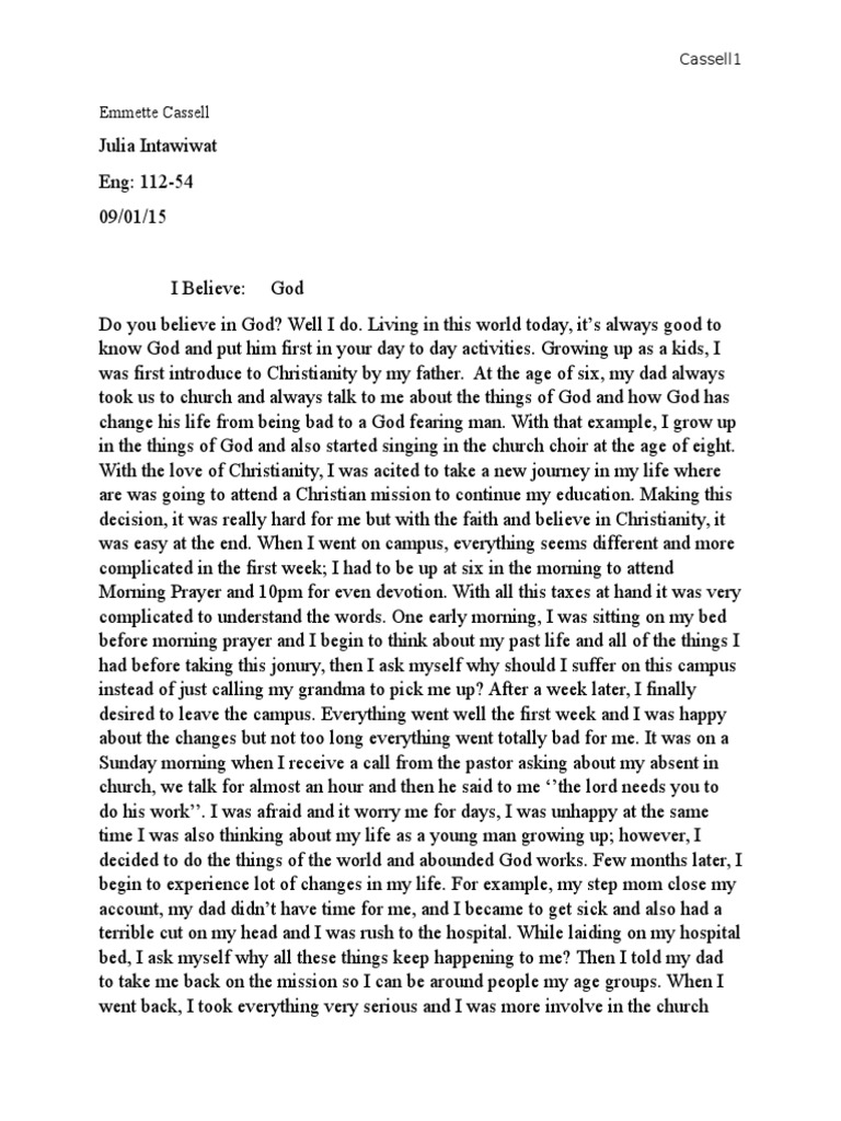 This I Believe Words: (2 pages) This I Believe I believe that happiness is obtained through optimism, gratitude, and a strong will. I believe in looking at things under a new light, not one of those dull manufactured bulbs. I believe that for any goal to be accomplished, you must first accept the fact that nothing will be handed to you 25/07/ · may 17, · ‘this i believe essay ‘ is an essay that deals with writing about something that you believe in. power lessons: “this i believe” essays - this assignment builds bonds between students and prompts them to be more intentional with the language they use. inch charles first used the pseudonym elia for a great essay around the southmore 04/12/ · This I Believe For 2 minutes: List words or ideas that you think about when you think of YOUR LIFE. (Can be feelings, symbols, names, events, etc.) After students generated this list, I asked them to consider what they wanted to write about and share with others